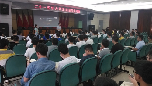 8月23日上午, 2015年新员工岗前实务培训在公司十五楼大会堂展开, 75名今年新入职的应届毕业新生齐聚于此,准备开启新一阶段的人生旅程。公司副总经理刘晓光到场并讲话。